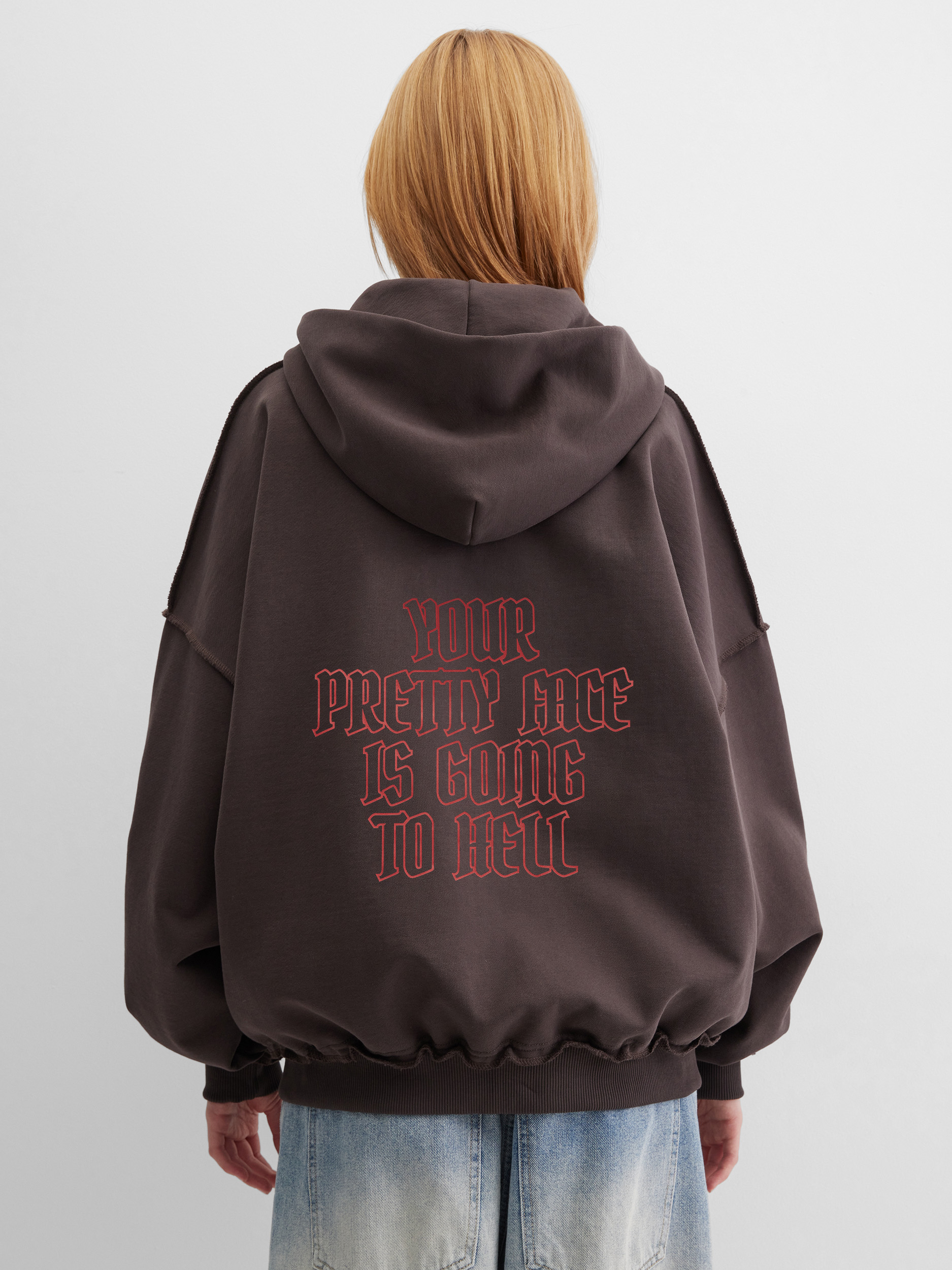 Зип-худи из плотного 100% хлопка с внешними швами, принт выполнен DTF-печатью